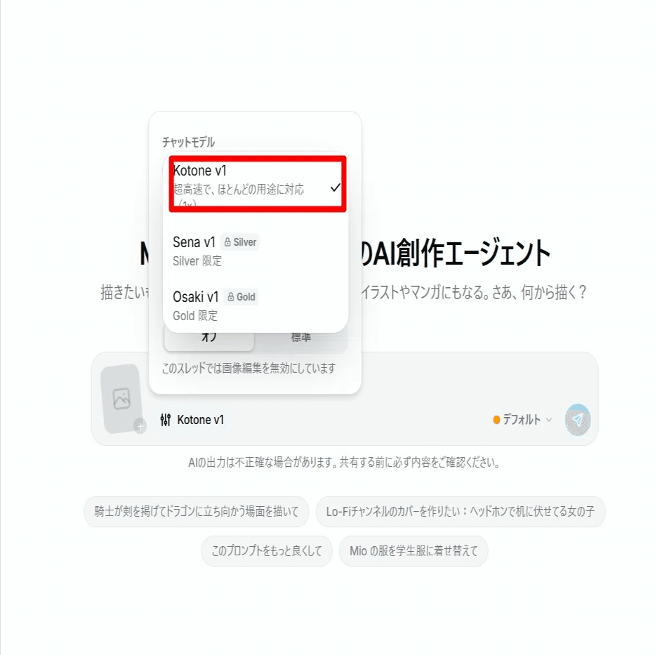 今回は、幅広い指示にスピーディーに対応できる「Kotone v1」を選択しました。